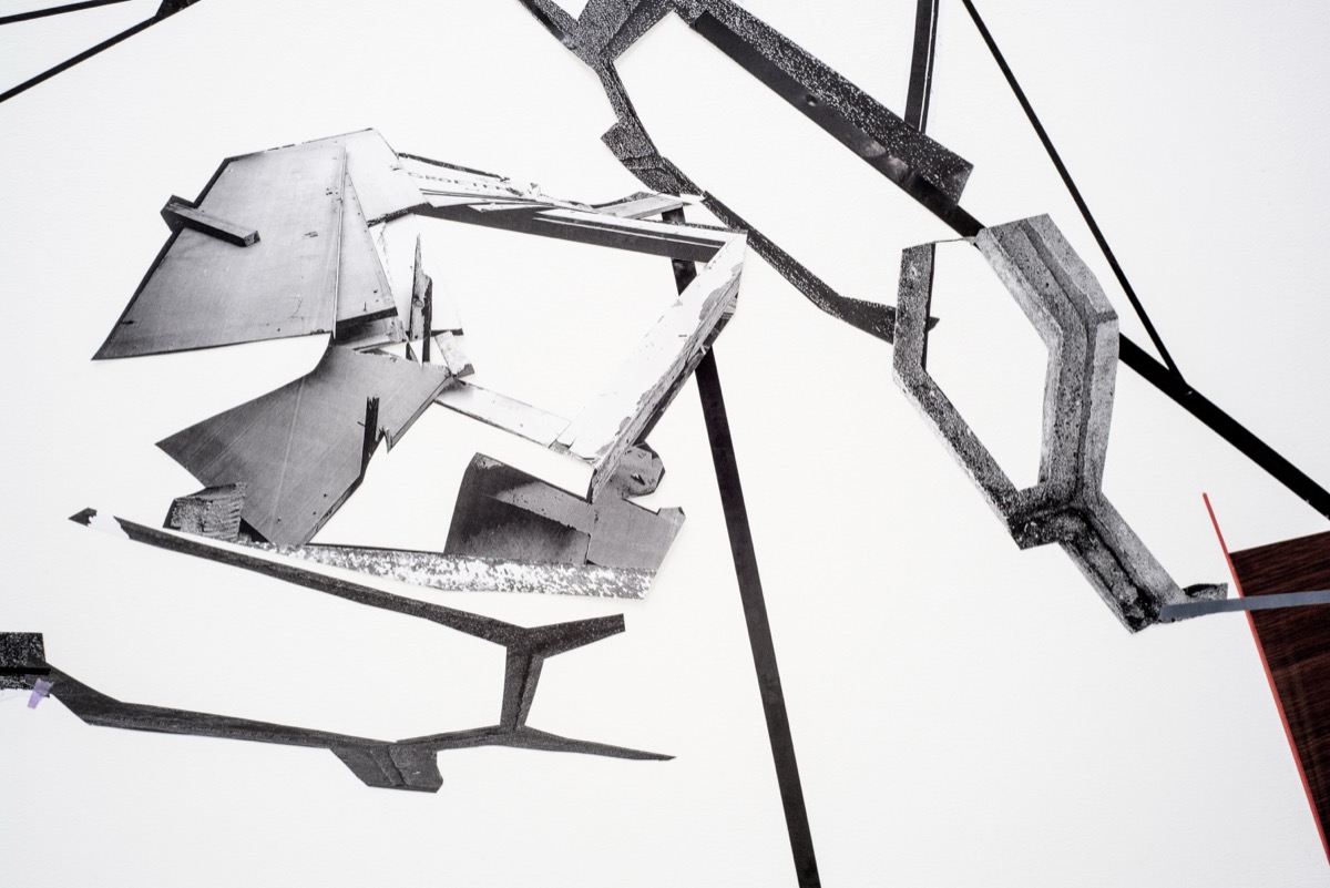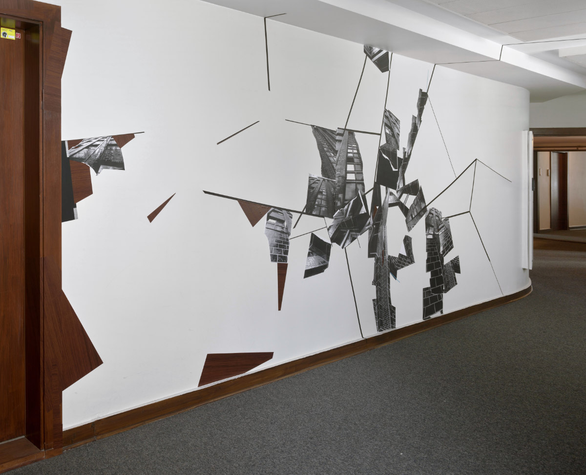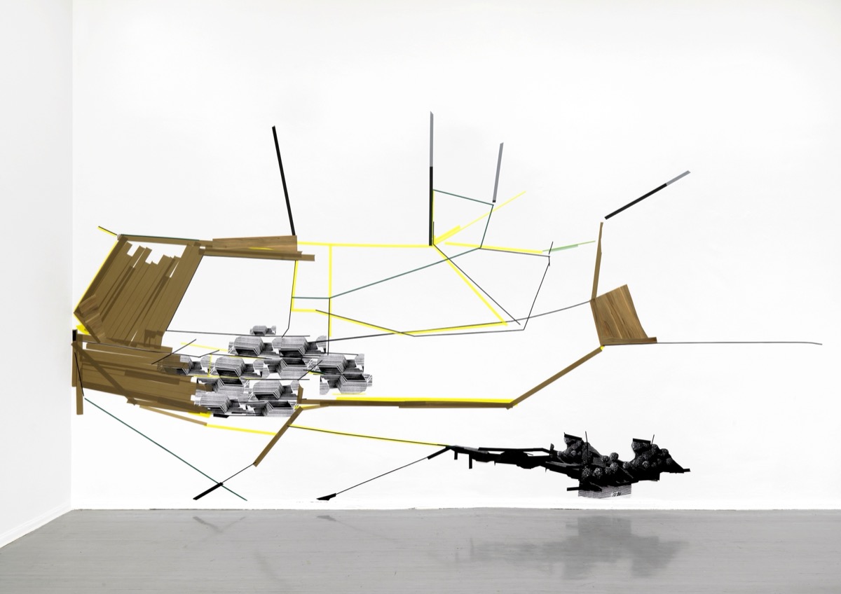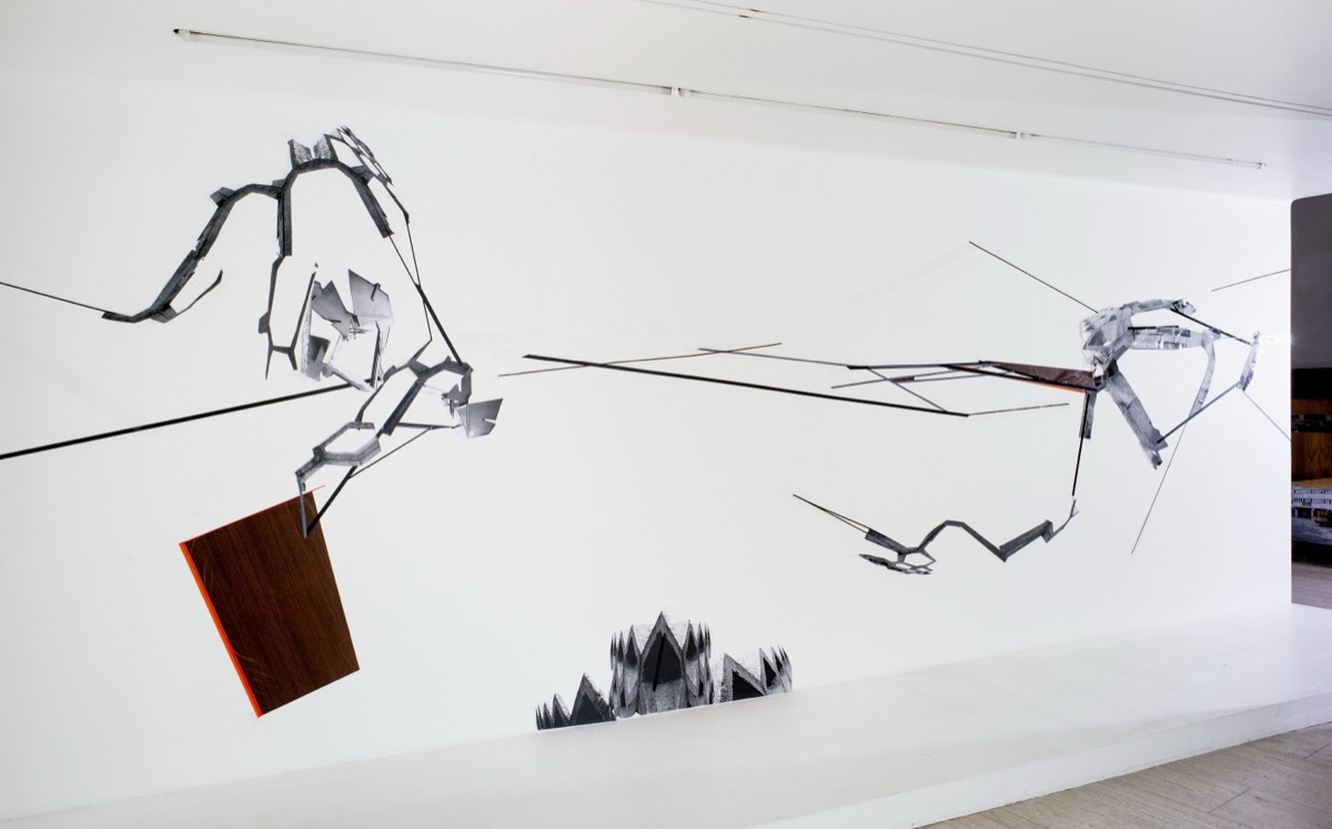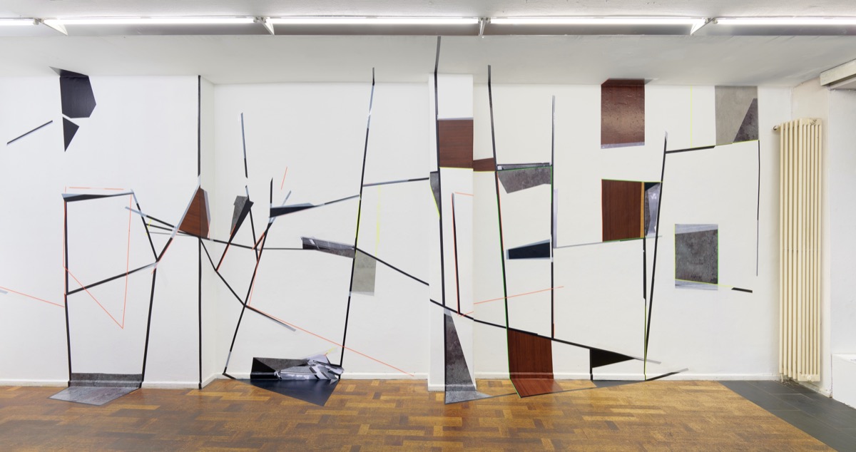 CUT!, Wandzeichnung aus Papier und Klebebändern, 2,60 m x 7,50 m