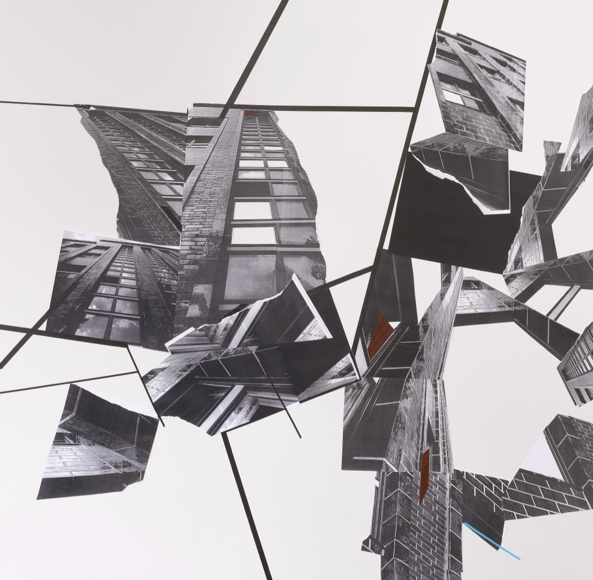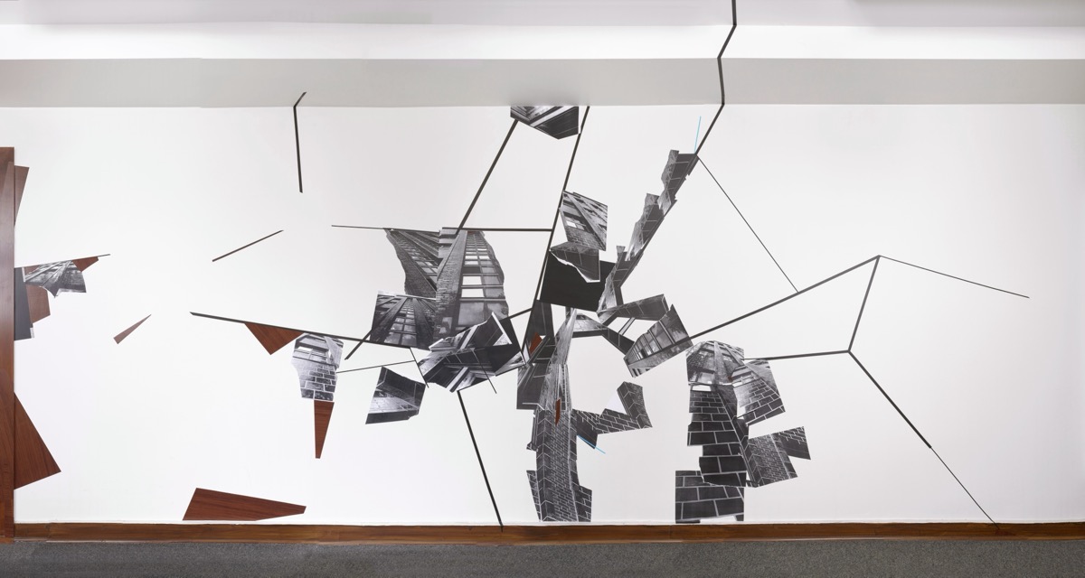 CUT!, Wandzeichnung aus Papier und Klebebändern, 2,60 m x 7,50 m