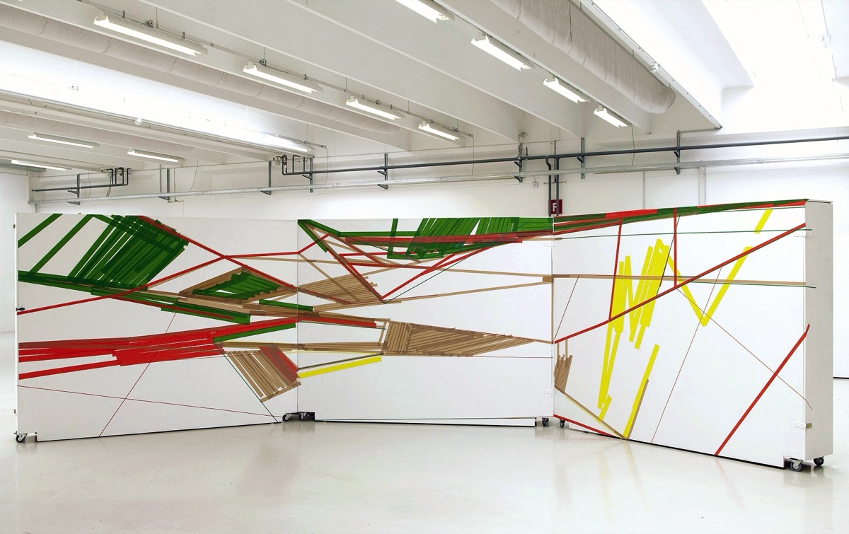 Wandzeichnung aus Klebebändern auf rollbaren Wänden, 2009